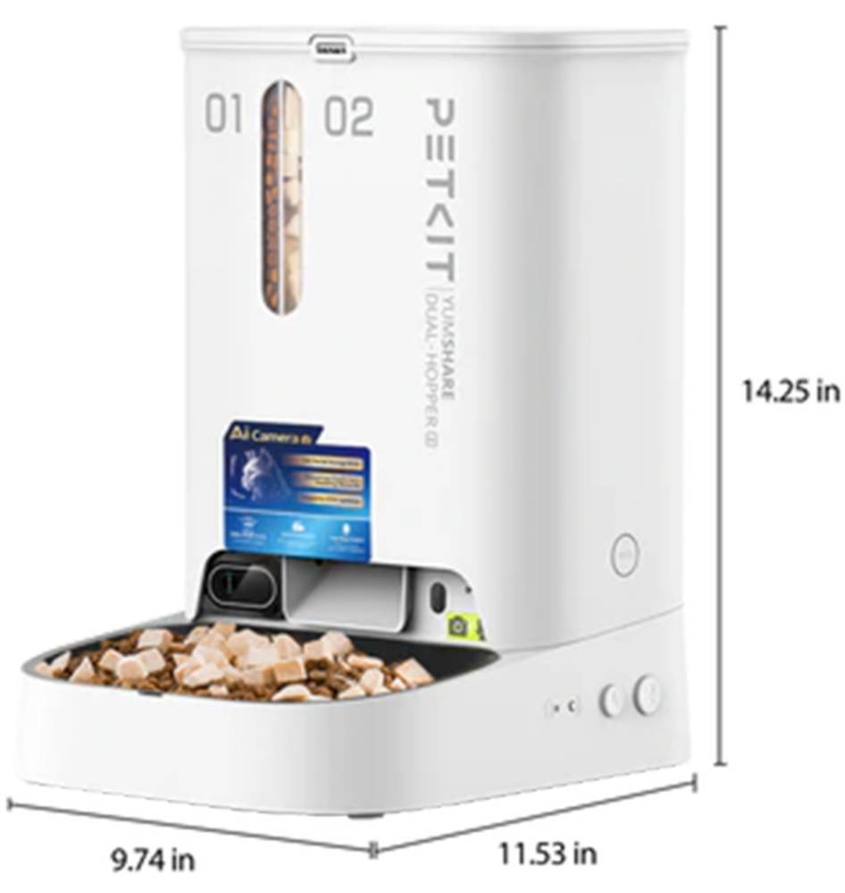 Смарт‑кормушка Petkit Yumshare Dual‑Hopper 2 with Cam P592 — це інноваційне рішення для автоматичного годування домашніх улюбленців із розумним контролем та моніторингом у режимі реального часу. Вона поєднує продуману функціональність, сучасний дизайн та зручний інтерфейс, що значно спрощує догляд за тваринами — як для котів, так і для собак. Ця кормушка дозволяє гнучко налаштовувати порції та графік годування через мобільний додаток Petkit (підтримка iOS та Android), забезпечуючи точний контроль харчування навіть на відстані. Вбудована камера зі звуком дозволяє спостерігати за улюбленцем, чути його та дати голосову команду під час годування — ідеально для зайнятих власників або тих, хто часто буває поза домом.