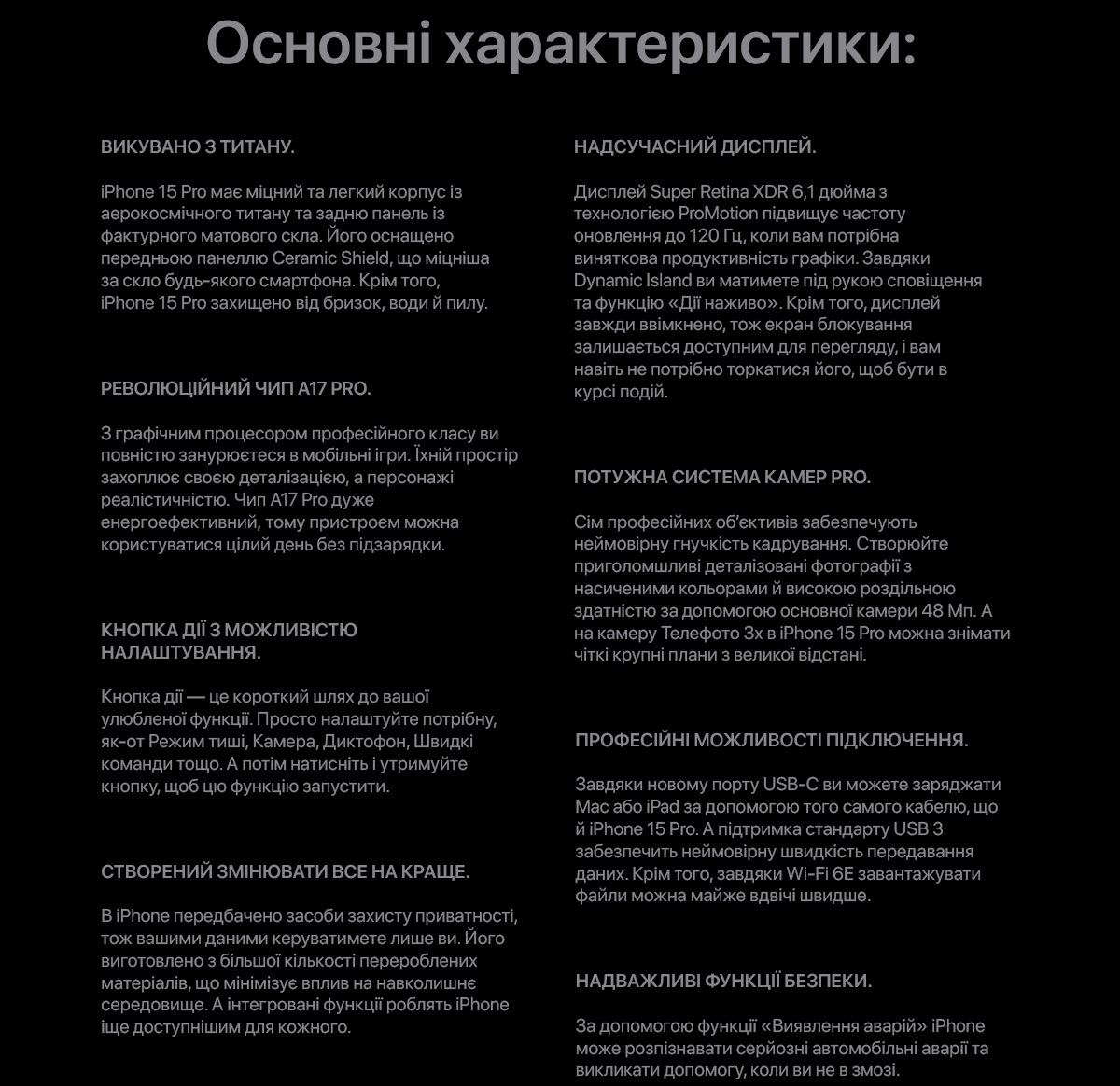 Характеристики Смартфон Refurbished Apple iPhone 15 Pro 128 Gb White Titanium (Відмінний стан , A)