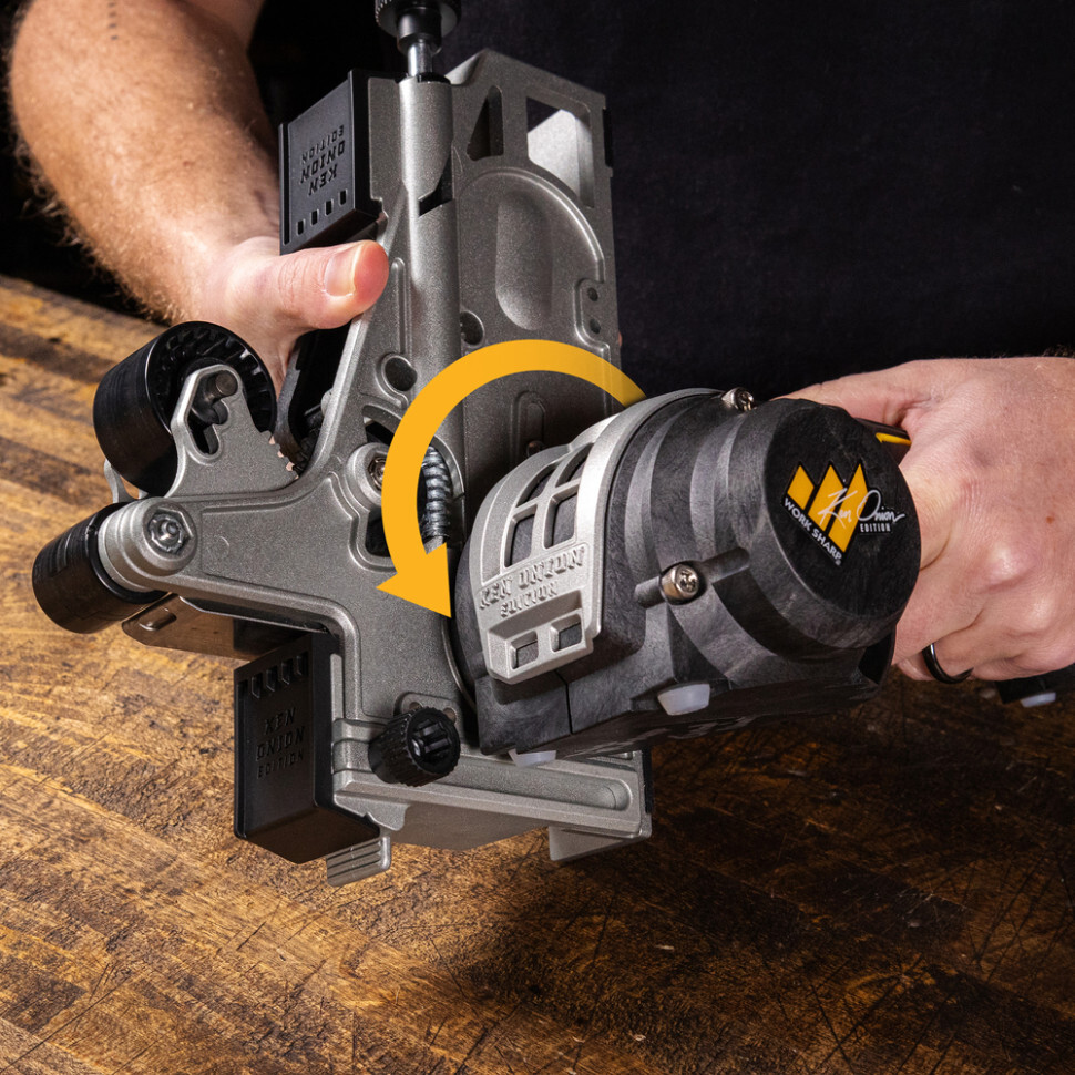 Хочете точити ваші улюблені інструменти, як професійний майстер? Рішення є, і це фірмовий модуль для електричної точила Work Sharp Ken Onion Edition, який дає змогу підняти якість догляду за ріжучими краями на абсолютно новий рівень і отримати гострі як бритва леза в домашніх умовах. Цю високоточну насадку розроблено з акцентом на простоту використання і досягнення професійних результатів. Точильний модуль поставляється в комплекті з 5 абразивними ременями різної зернистості: P120, P3000, P220, P1000, P1200. З їхньою допомогою можна поетапно заточувати леза, зокрема з високоміцних марок сталі, повертаючи їм еталонну гостроту на рівні заводського заточування.