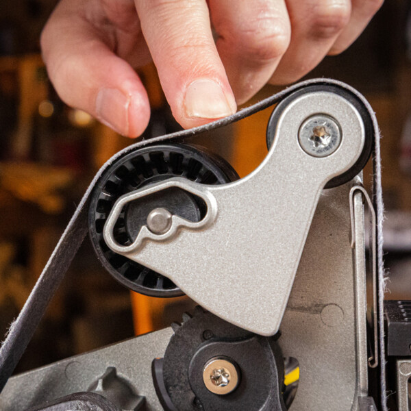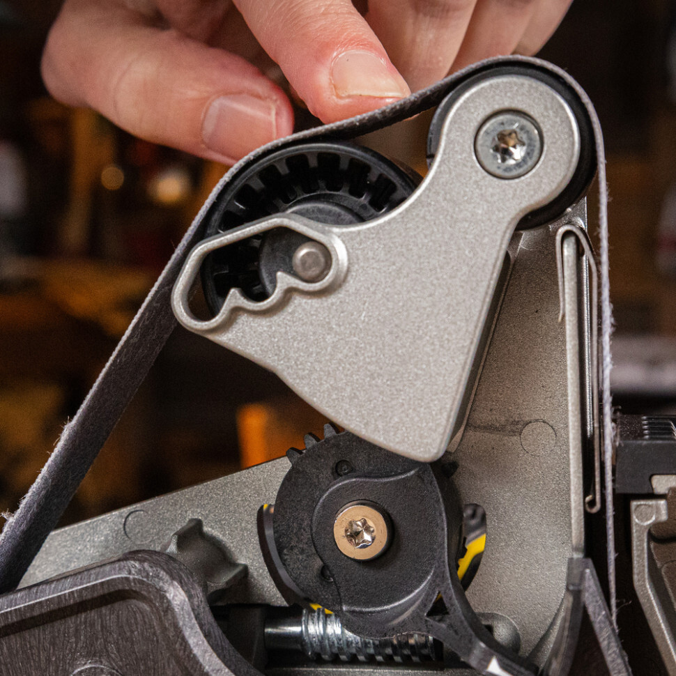 - Великі гнучкі абразивні ремені (2,5x45 см) покращують контроль над заточуванням під час роботи з клинками різних розмірів.