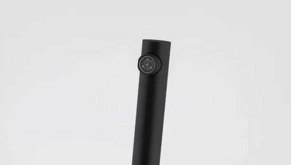 Одноважільний змішувач L-подібної форми зливом, який обертається на 360 градусів і оснащений бічним важелем управління.