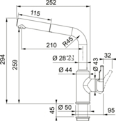 - Змішувач для кухні Franke Urban Pull Out, 252мм, витяжний, 1важіль, хром (115.0595.083)