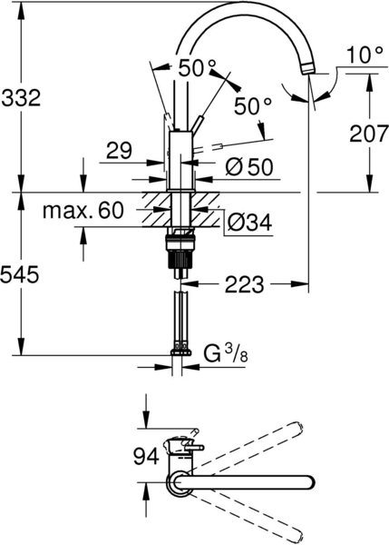 Інструкції Змішувач для кухні Grohe BauClassic, 223мм (30577000)