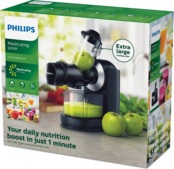 Насолоджуйтеся порцією корисного соку щодня. Шнековая соковижималка Philips – незамінний пристрій для приготування соку. Ця соковижималка має великий отвір для подачі, щоб вичавлювати соки з цілих фруктів та овочів. Прилад можна очистити під струменем води лише за 90 секунд.