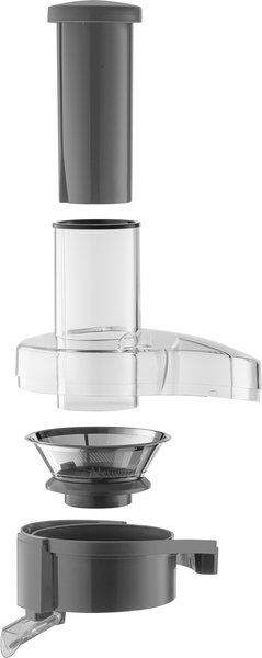 Ємність для соку з гігієнічно безпечного харчового пластику об'ємом 0,75 л дає змогу точно дозувати потрібну кількість напою. Приставна модель дає змогу скористатися не лише спеціальним посудом, а й готувати сік безпосередньо в персональну чашку або склянку, що полегшує догляд за виробом. До того ж помити окремий контейнер простіше, ніж інтегрований у корпус предмет. Місткий резервуар для макухи об'ємом 1,6 л дасть змогу працювати без перерви досить довго.