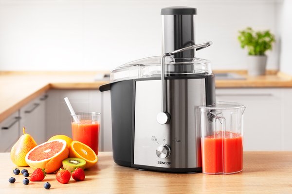 Відцентрова соковижималка Sencor SJE1055SS - стильний, зручний і надійний прилад для домашнього користування. З її допомогою можна з легкістю приготувати сік практично з будь-яких плодів і овочів. Відмінний спосіб швидко готувати ароматні, вітамінні напої, що особливо актуально для прихильників здорового способу життя. Двигун високої потужності легко обробляє будь-які продукти. Автоматична система безпеки запобігає передчасним поломкам.