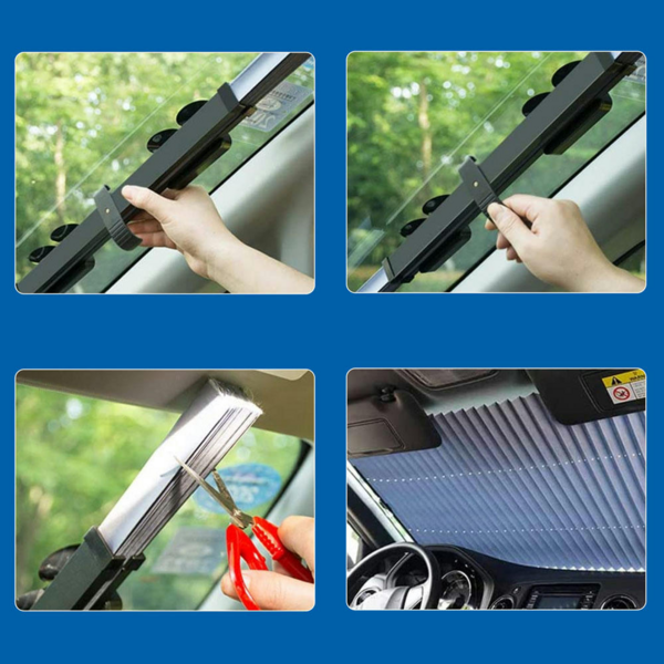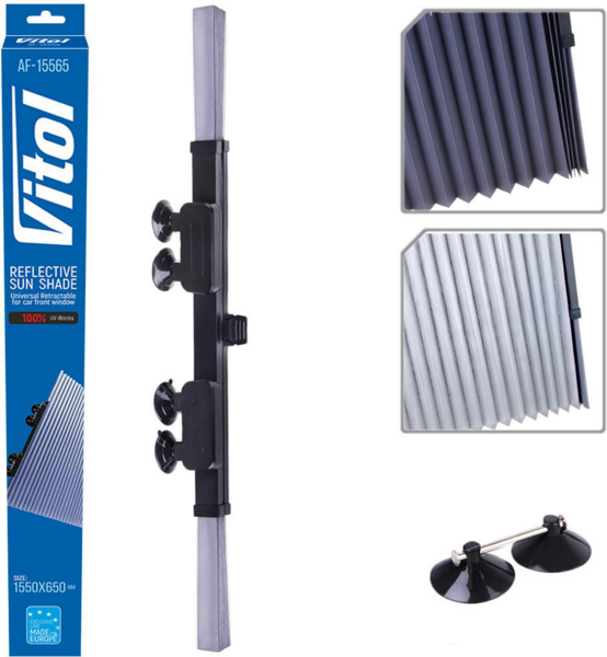 Шторка на лобове/заднє скло необхідне для блокування потрапляння сонячних променів з боку лобового/заднього скла в салон машини. Сонцезахисна шторка являє собою полотно з фольгованого матеріалу з механізмом автоматичного складання за принципом віяла, за допомогою пружини та волосіні. Срібляста поверхня відбиває сонячні промені, захищаючи салон і торпеду автомобіля від сильного нагрівання. Кріпиться на надійних присосках, завдяки чому їх можна встановити в автомобілі будь-якої моделі та марки. Встановлюються, як правило, на лобове скло з боку пасажира і при витягуванні надійно фіксуються на різну довжину лобового або заднього скла автомобіля. Шторка сонцезахисна "гармошка" допоможе збільшити ступінь зручності водія і пасажирів у використанні автомобіля. Крім того, постійний захист салону від сонця дасть змогу зберегти первісний вигляд автомобільних сидінь і захистить їх від вицвітання.