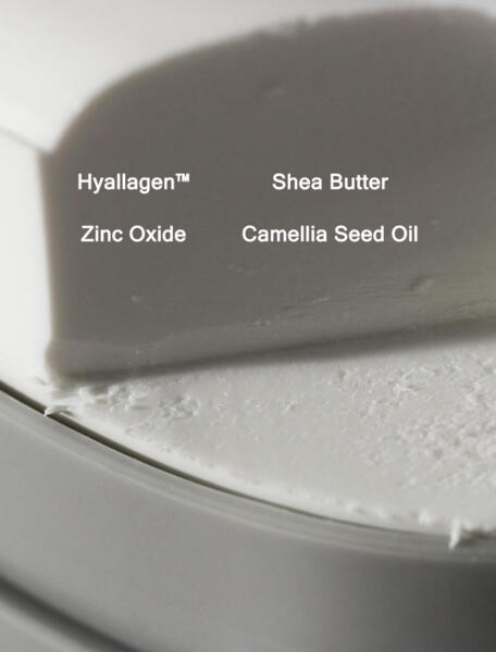 - Олія камелії — зволожує та живить шкіру, покращує її текстуру й еластичність. Відновлює бар’єрну функцію, зменшує запалення й прискорює загоєння. Захищає від передчасного старіння, сповільнюючи утворення зморшок, і надає шкірі м’якості та сяйва.