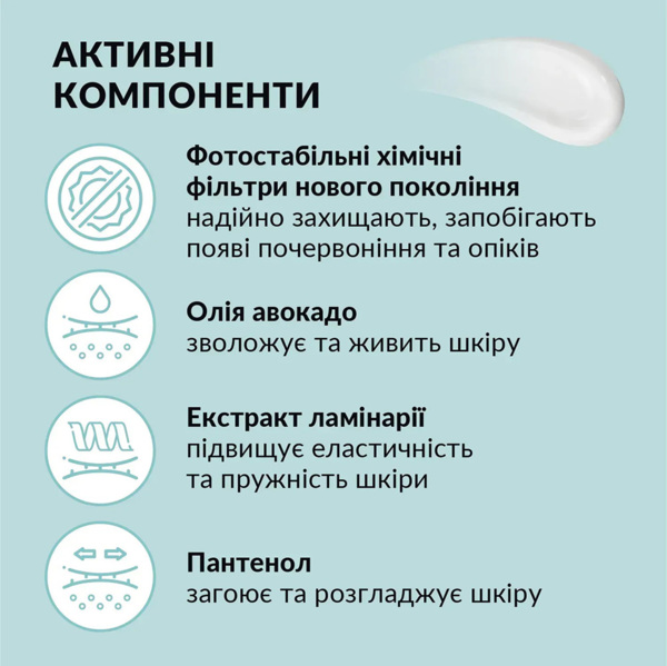 - Оновлюйте захист кожні 2–3 години, а також після купання, активних занять спортом або використання рушника;