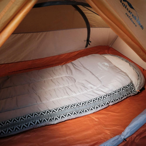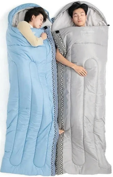 Спальний мішок з капюшоном Naturehike L250 NH21MSD07 для використання під час перебування на вулиці. Оптимальна температура для застосування становить 9 градусів тепла. Спальник можна попарно стягувати. Виріб компактно упаковується, і в складеному вигляді не займе багато місця. Спальний мішок має відмінну повітропроникність, добре зігріває під час сну.