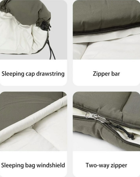 Як наповнювач використана порожниста бавовна. Вона добре зберігає природне тепло всередині спального мішка, захищаючи відпочивальника від переохолодження у разі зниження температури повітря до позначки -4°C. Спальник оснащений знімним капюшоном, який можна затягувати з двох боків, щоб захистити голову від протягів. У моделі передбачена подвійна застібка-блискавка, тому виріб можна розстібати будь-яким зручним способом.