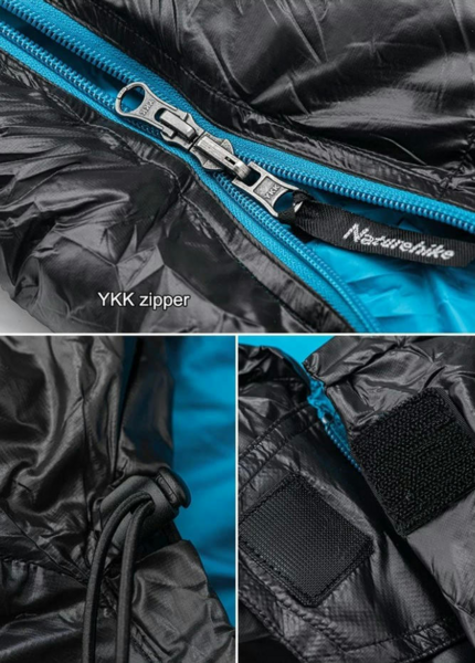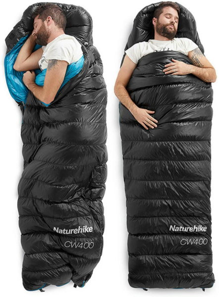 - Спальник з натуральним пухом Naturehike CW400 NH18C400-D, p-р L, чорно-блакитний