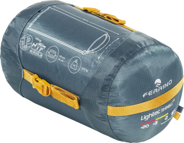 Серія ультралегких спальних мішків Ferrino Lightec має мінімальні розміри в компресійному чохлі, але при цьому відмінно підходить навіть для користувачів зростом більше ніж 2 метри. Ferrino Lightec Shingle SQ/-2°C Blue Left (86266NBBS) є найлегшим та найкомпактнішим синтетичним спальним мішком прямокутної форми серед моделей із подібним рівнем теплоізоляції. Попри те, що дана модель позиціонується як 3 сезонний спальник, але якщо в пріоритеті стоїть економія місця в рюкзаку, то спальний мішок можна використовувати й в зимових походах, завдяки значному запасу за екстремальною температурою. Зовнішній матеріал має посилену структуру Ripstop, що забезпечить додатковий запас надійності. Матеріал наповнювача H.T.F. Compact має визначне співвідношення ваги та термоізоляційних властивостей. Блискавка розстібається як ззовні, так і зсередини, має утеплювальний борт та стропу проти защемлення тканини в замку. Два однакових спальних мішки з лівою та правою блискавкою можна застебнути разом і перетворити на затишний двомісний спальний мішок. Спальний мішок Ferrino Lightec Shingle SQ/-2°C Blue Left (86266NBBS) ідеально підходить для тривалих подорожей з рюкзаком, самостійних ультратрейлів і важких походів з початку весни до кінця осені.