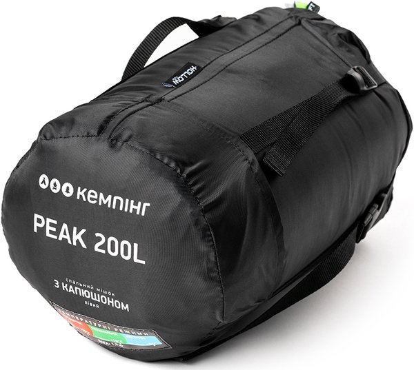 Спальний мішок КЕМПІНГ "Peak" 200L з капюшоном зелений