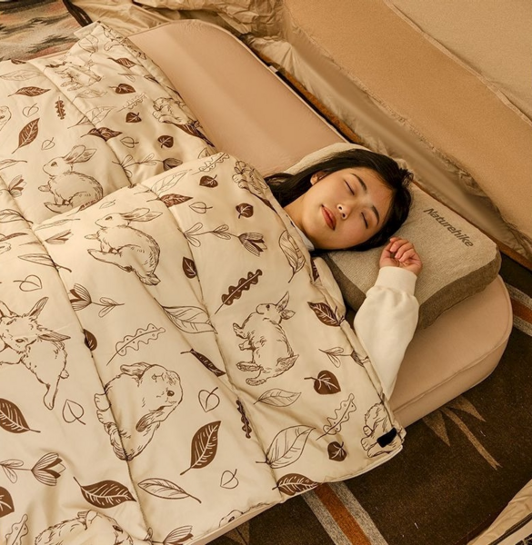 Популярна модель спального мішка, призначена для відпочинку на природі навесні чи восени. Вона підходить як професійним мандрівникам, так і аматорам активного відпочинку. За допомогою такого спальника можна комфортно спати у прохолодну погоду. Виріб добре захищає від вітру, а також забезпечує надійний захист від вологи, оскільки його верхня частина виконана з поліестеру. Мішок максимально зручний у використанні. Його можна розстебнути знизу для покращення вентиляції ніг. Також спальник можна використовувати як комфортну ковдру, якщо розстебнути її повністю. Спальний мішок виконаний у вигляді конверта з якісного вологостійкого поліестеру з бавовняною підкладкою, що дихає. Модель має зручний каптур, який можна стягнути на голові у разі сильного вітру чи дощу. Спальний мішок можна прати у пральній машині. Особливістю цього спальника вважається оригінальний принт із кроликами, завдяки якому він підходить для тих, кому набридли стандартні спальники.
