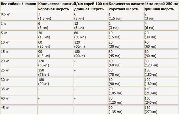 - Препарат легко дозується: одне натискання на розпилювальну голівку флакона місткістю 100 мл забезпечує дозу 0.5 мл; одне натискання на розпилювальну голівку флакона місткістю 250 мл забезпечує дозу 1.5 мл; повторні обробки тварин проводять за показаннями, але не частіше ніж 1 раз на три місяці проти комах та не більш ніж 1 раз на місяць проти іксодових кліщів. До повного висихання шерсті не можна дозволяти тваринам злизувати препарат, підпускати їх до відкритого вогню і нагрівальних приладів. Протягом 24 годин після обробки не слід гладити тварину і підпускати її до маленьких дітей. З метою запобігання виплоду бліх і повторного інвазування тваринам замінюють підстилку. Побічних явищ і ускладнень при застосуванні препарату Фронтлайн-спрей не відзначається.