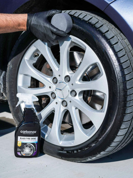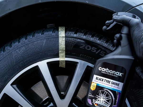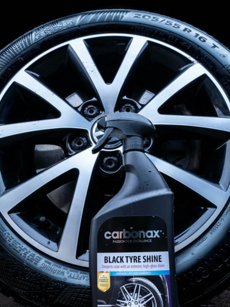 Carbonax Black Tire Shine - це професійний спрей, створений для ідеального догляду за шинами автомобіля. Він ефективно захищає шини від пилу, бруду, залишків оливи та інших дорожніх забруднень, запобігаючи їхньому руйнівному впливу. Спеціальна формула продукту запобігає вигорянню шин під впливом сонячних променів і кліматичних умов. Спрей заповнює мікротріщини та приховує дрібні дефекти, надаючи шинам насиченого чорного кольору та ефекту "мокрого блиску". Продукт підходить для використання на автомобілях, мотоциклах і мопедах.
