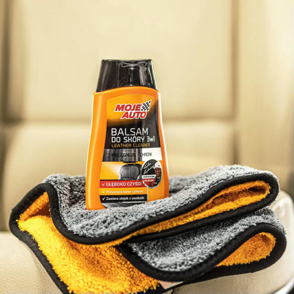 Очищувач-кондиціонер шкіри 3в1 Moje Auto 19-582 - засіб для очищення і догляду за шкіряною оббивкою салону авто. Є продуктом професійного класу і гарантує ефективне усунення будь-яких плям — завдяки пінній консистенції засіб проникає глибоко в пори шкіри та витісняє з них забруднення, відновлюючи початкову насиченість кольору. Запобігає її висиханню, вицвітанню і розтріскуванню. Володіє властивостями кондиціонера і надає шкіряній оббивці м'якості та еластичності, перешкоджає пересиханню і появі тріщин. Бальзам Moje Auto 19-582 підходить також для використання в побуті, для догляду за шкіряними кріслами або диванами.