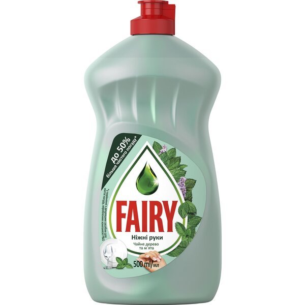 - Засіб для миття посуду Fairy Ніжні руки Чайне дерево та м’ята 500 мл