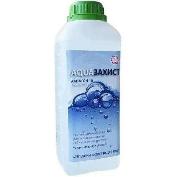 - Для приготування розчину для дезінфекції ємкостей використовують 9 мл реагенту "Акватон-10" додають до 5 л води та ретельно перемішують протягом 3-5 хв.
