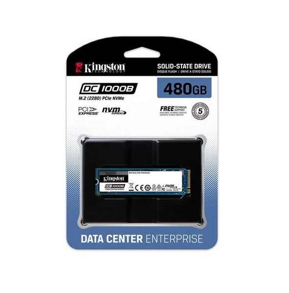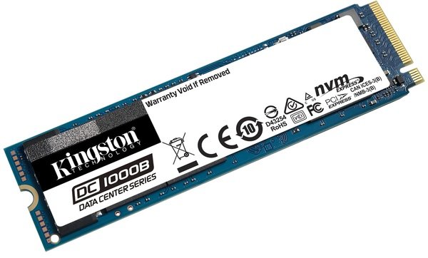 Накопичувач DC1000B компанії Kingston для центрів обробки даних є високопродуктивним твердотілим накопичувачем SSD зі специфікацією NVMe і стандартом PCIe M.2 (2280), оснащений новітнім інтерфейсом PCIe Gen 3.0 x 4 з 64-шарової пам'яттю 3D TLC NAND. Накопичувач DC1000B представляє для центрів обробки даних економічне рішення по завантажувальним дискам, забезпечуючи впевненість, що вони набувають твердотільні накопичувачі, призначені для використання в серверній середовищі. Накопичувач DC1000B ідеально підходить для використання в серверах великого об'єму в якості внутрішнього (-их) завантажувального (-их) диска (-ів), а також для використання в спеціалізованих системах, для яких потрібно високопродуктивний твердотільний накопичувач SSD M.2, оснащений функцією вбудованої захисту від втрати живлення (PLP).