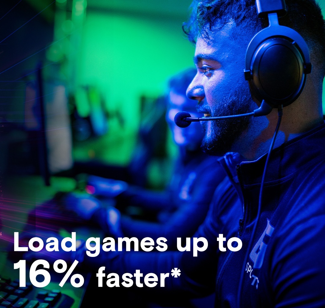 Завантаження ігор на 16% швидше. Зберігайте більше ігор завдяки великому обсягу пам'яті. Підвищена продуктивність під час рендерингу завдяки Microsoft DirectStorage.
