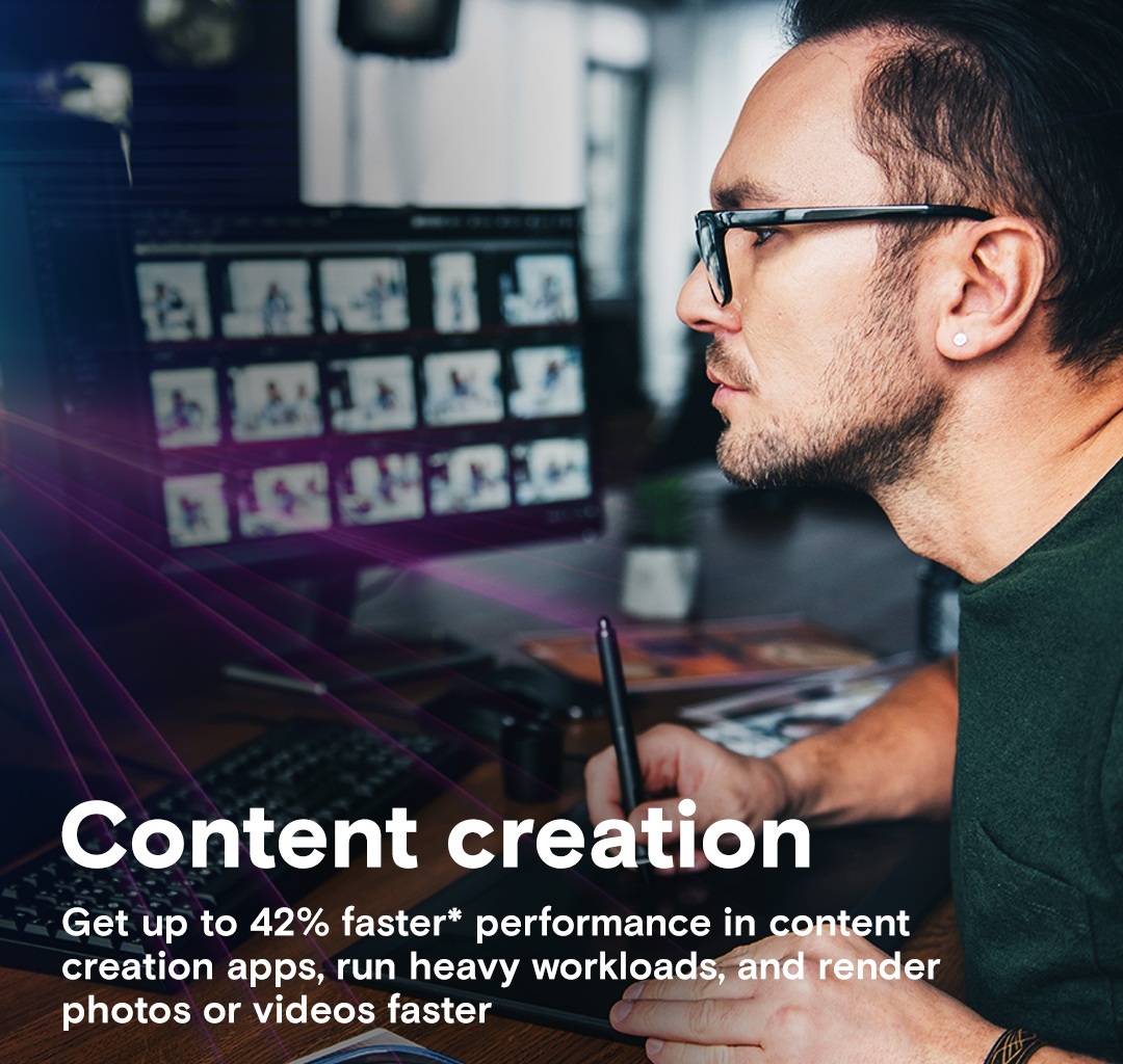 Швидше розробляйте та доопрацьовуйте проекти. Підвищіть продуктивність програм для створення контенту до 42%. Звільніть системні ресурси для роботи без затримок.