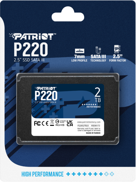 Модель Patriot P220 оснащена новітнім контролером SATA III та підтримує зворотну сумісність із SATA II. Завдяки продуктивності нового покоління та формфактору 2,5" цей SSD-накопичувач справді створений для того, щоб легко зберігати все необхідне в одному місці.
