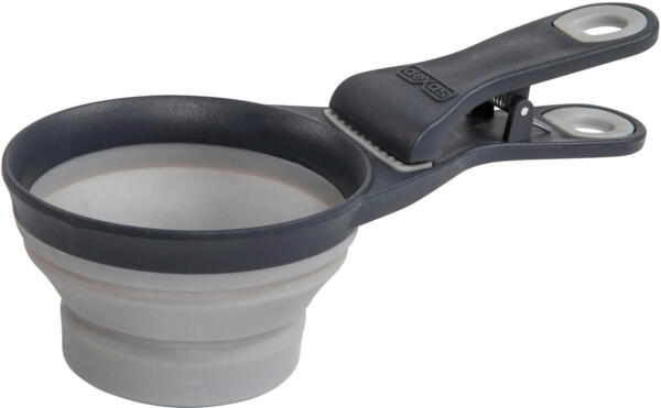 Dexas Collapsible KlipScoop – складний мірний стакан на кліпсі. За допомогою мірного стакана, можна швидко набрати потрібну кількість корму, не хвилюючись, що ваш пес з'їв більше потрібної норми. Мірний стакан можна використовувати, як закріплювач для мішків, щоб корм не розсипався, залишався свіжим та ароматним.