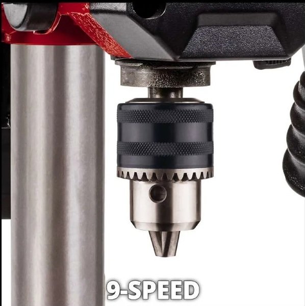 Свердлильний верстат Einhell TC-BD 500 працює в 9 швидкісних режимах, що суттєво розширює його можливості та дозволяє швидко і акуратно просвердлювати заготовки різної твердості на максимально потрібній швидкості. Оператор має можливість виставляти кількість обертів у діапазоні від 300 до 2410 об/хв. Модель активно використовується у невеликих майстернях. Жорстка станина агрегату стійка до механічних пошкоджень. Верстат відрізняється високою міцністю конструкції і завдяки якісному складанню не розбовтується в процесі свердління.