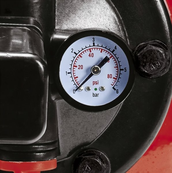 Добре видимий манометр завжди надає інформацію про тиск води. У разі падіння тиску через низький рівень води насос автоматично вмикається вбудованим реле тиску. Це забезпечує постійне подання води в будинок і сад.