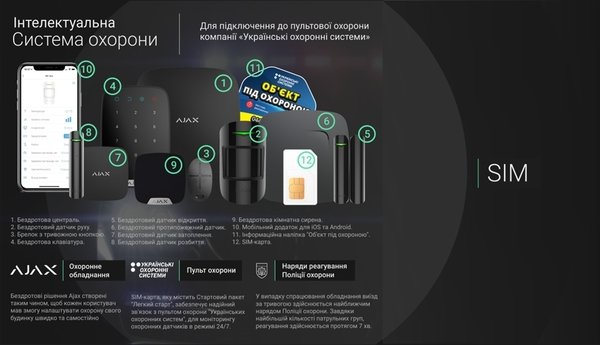 - Абонентська плата від 300 грн. на місяць (залежить від типу об'єкта та кількості датчиків AJAX).