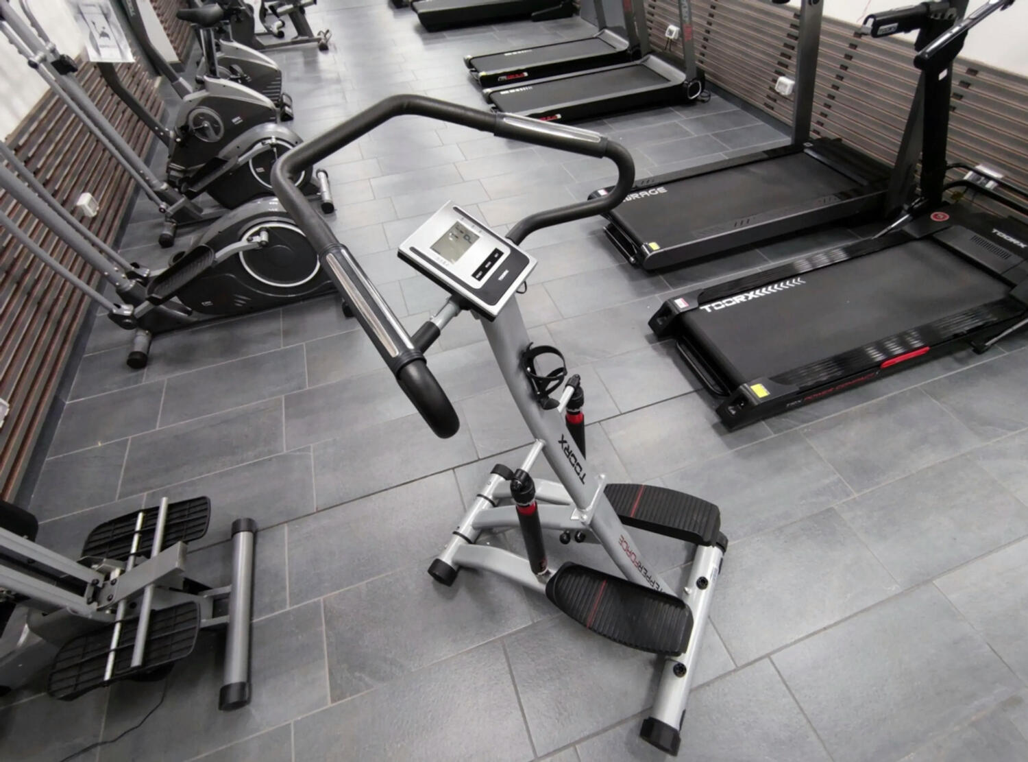 Степер Toorx Stepper Force від італійського виробника Garlando S.p.A. імітує підйом сходами та призначений для простого та ефективного кардіотренування в домашніх умовах. Тренажер має 12 регульованих рівнів навантаження, створюваних двома гідравлічними поршнями. Великі нековзаючі педалі з незалежним ходом дозволяють тренуватися досить ефективно. Вбудовані сенсорні датчики вимірювання пульсу будуть доречними під час тренування для контролю частоти серцевих скорочень. Складана конструкція тренажера заощаджує місце і дозволяє розмістити його навіть на мінімальній площі, необхідної для занять спортом, а транспортувальні ролики допомагають переміщати його по кімнаті.