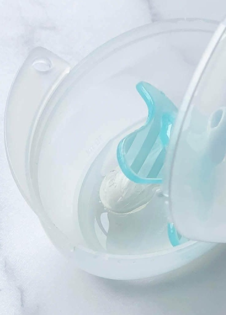 Покладіть одну або дві соски в стерилізатор та наповніть його 10 мл води до позначки. Закрийте кришку й поставте в мікрохвильову піч. Встановіть потужність 800 Вт. Через 3 хвилини пустушки будуть простерилізовані. Дайте стерилізатору охолонути, перш ніж виймати його з мікрохвильової печі. Вилийте воду через бічні отвори.
