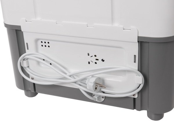 Корпус пральної машини виконаний з міцного полікарбонату білого кольору. Для зручності, кришка оснащена напівпрозорим сірим ілюмінатором. Усі внутрішні компоненти надійно ізольовані від контакту з водою. Пристрій відповідає II класу захисту від ураження струмом.