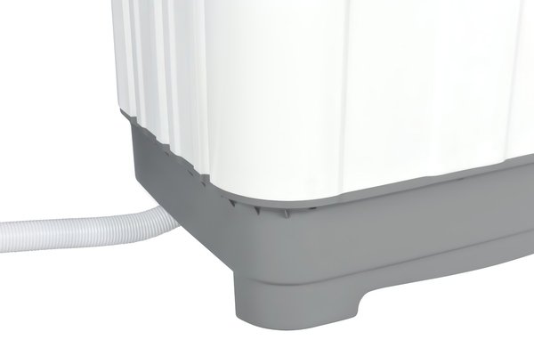 Корпус пральної машини виконаний з міцного полікарбонату білого та сірого кольорів. Для зручності, кришка оснащена напівпрозорим чорним ілюмінатором. Усі внутрішні компоненти надійно ізольовані від контакту з водою. Пристрій відповідає II класу захисту від ураження струмом.