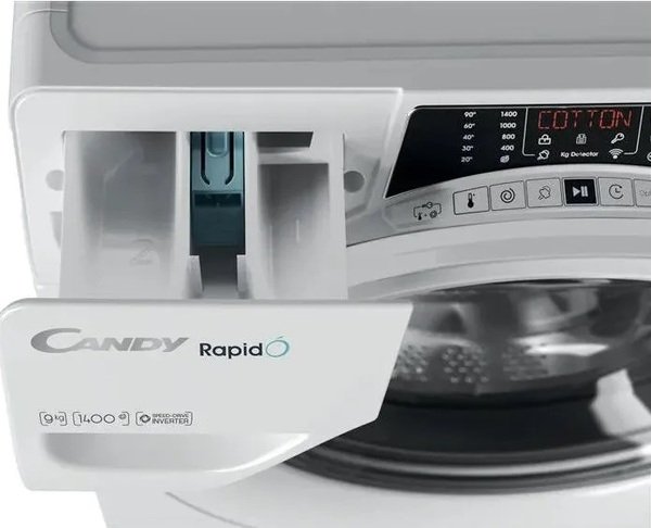 Candy RapidÓ – найпростіший спосіб заощадити час. RapidÓ має 9 швидких програм прання на будь-який випадок, які допомагають заощадити час та зробити життя зручнішим. Залиште прання машині й займайтеся тим, що найбільше подобається. Candy використовує лише нові інверторні двигуни, знижуючи рівень шуму та вібрацій до одного з найнижчих рівнів на ринку, забезпечуючи тривалу роботу з дуже низьким енергоспоживанням.