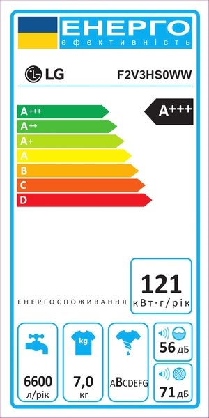 | Основні програми | Антиаллергенна, Швидке прання, Делікатне прання, Інтенсивне прання, Повсякденна прання, Попереднє прання |