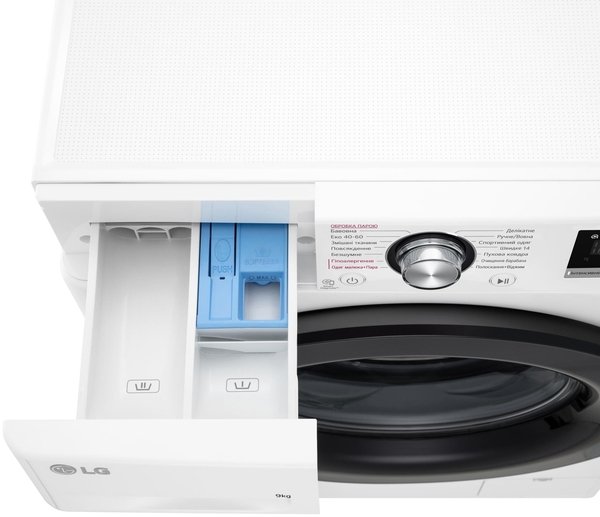 | Додатково | Пральні машини із завантаженням на 9 кг , Пральні машини LG з фронтальним завантаженням , Пральні машини із великим завантаженням , Пральні машини з інверторним двигуном та прямим приводом, Інверторні пральні машини LG, Пральні машини LG з парою, Пральні машини LG з прямим приводом, Пральні машини LG AI DD, Пральні машини зі Smart функціями, Пральна машина LG на 9 кг |