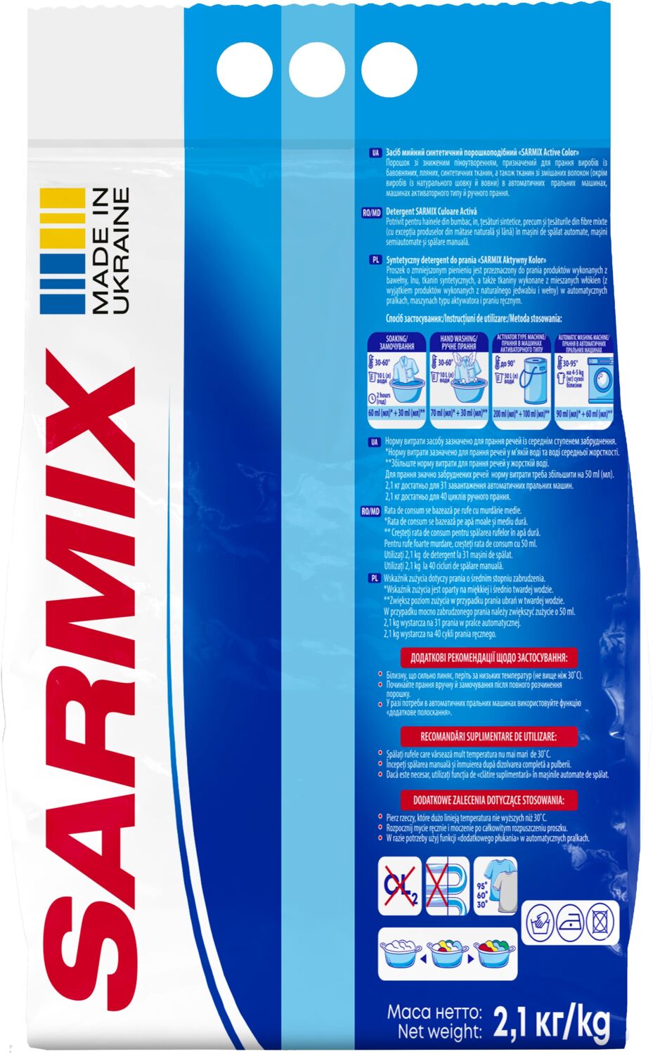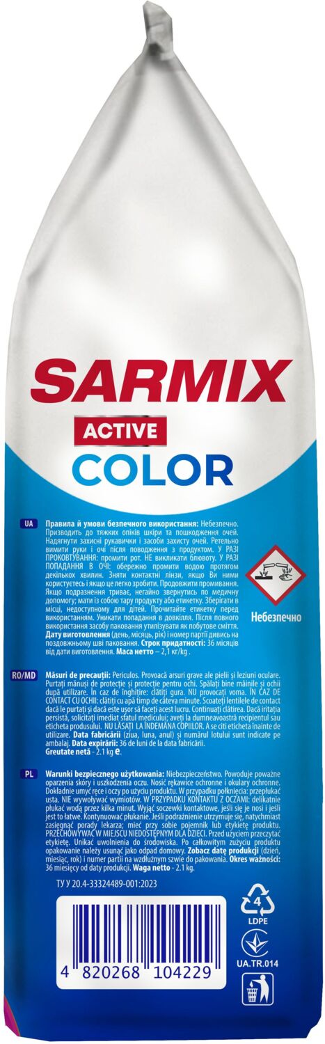- Пральний порошок Sarmix Active Color для всіх типів прання 2,1 кг
