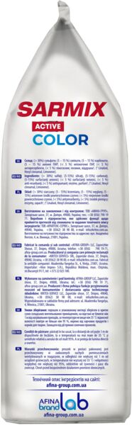 Пральний порошок Sarmix Active Color призначений для прання виробів з бавовняних, лляних, синтетичних тканин, а також тканин зі змішаних волокон (окрім виробів з натурального шовку та вовни).