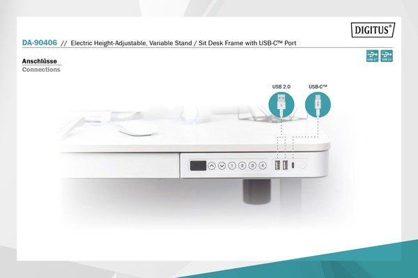 Зробіть добру справу для себе та свого здоров'я за допомогою цієї регульованої по висоті рами столу від DIGITUS®! Висоту столу можна регулювати за допомогою вбудованої панелі керування від 72 до 121 см, а функція захисту від зіткнень захищає від зіткнень з перешкодами під стільницею. Панель керування можна заблокувати, наприклад, щоб діти не могли випадково пограти з нею. Крім того, мобільні пристрої, такі як смартфони або планшети, можна заряджати за допомогою 3 доступних роз'ємів USB, у тому числі двох роз'ємів USB A та одного порту USB-C. Ящик, розташований під стільницею, забезпечує зручне місце для зберігання речей, дозволяючи швидко упорядкувати свій робочий стіл. Регулярно вставайте, щоб покращити своє здоров'я та запобігти порушенню постави або обмеження опорно-рухового апарату!