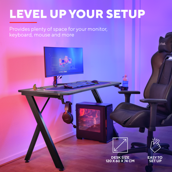 Розширте свій ігровий простір за допомогою ігрового столу Omnius. Завдяки просторому розміру 120x60x74 см у вас буде достатньо місця для монітора, клавіатури, миші та інших пристроїв, щоб усе необхідне було під рукою.