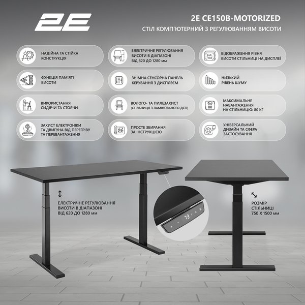Стіл комп'ютерний 2E CE150B-MOTORIZED з регулюванням висоти