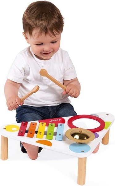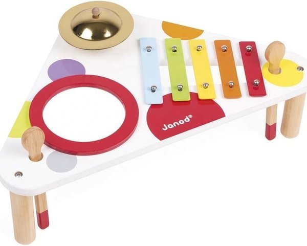 Столик конечно чудесный, яркие цвета привлекают ребенка, а музыкальные инструменты нравятся ему еще больше. Мой малыш любит забавляться и играть с ним, игрушка Джанод абсолютно безопасная и сделана на совесть. Острых углов нет, так что подходит он для самых маленьких, ребенку интересно изучать звуки и конечно как всем детям стучать палочками. Тут и барабан и ксилофон и даже звенящий колокольчик есть, так что полный комплект для любителей пошуметь. Такой набор мне продавец-консультант в этом магазине посоветовал, и на радость сыну я конечно его купила. Все нравится, столик замечательный, считаю что такие игрушки развивают малыша, он познает звуки и учится.