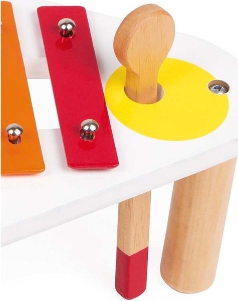 Ребенку для развития в музыкальном плане купили такой стол с ксилофоном, и теперь от него не отходит. С большим удовольствием играет, а я же рада, что качество у стола отличное! Он звучит отлично, чисто, приятно, но при этом не сильно громко, мешать взрослым точно не будет. Палочки качественные, как и сам ксилофон, очень высокий уровень прочности. Выглядит весьма ярка, в самый раз для ребенка. Рекомендую!