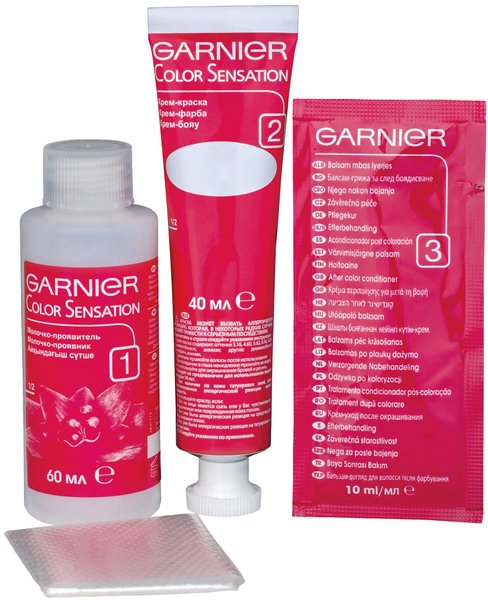 Garnier Color Sensation стійка крем-фарба для волосся, "Інтенсивний колір" забезпечить рівномірне, якісне фарбування без шкоди для вашого волосся. Стійка крем-фарба, завдяки кремоподібній текстурі легко наноситься й рівномірно розподіляється по всій довжині волосся. Спеціальна технологія від Garnier Color Sensation забезпечує інтенсивне освітлення і фарбування, а колір волосся після фарбування, стає яскравим, рівномірний і насиченим. Завдяки поживним оліям волосся має здоровий і доглянутий вигляд. А перламутр, що входить до складу, надає сліпучий блиск і сяйво вашому волоссю. Великий вибір палітри допоможе дібрати свій неповторний колір від суперсвітлого до ультрачорного.