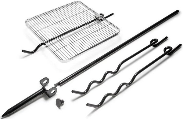 - Гриль-решітка дозволяє поставити на вогонь посудин, які не мають ручки для підвішування: сковорідку, сотейник, певні моделі чайників та перколяторів.