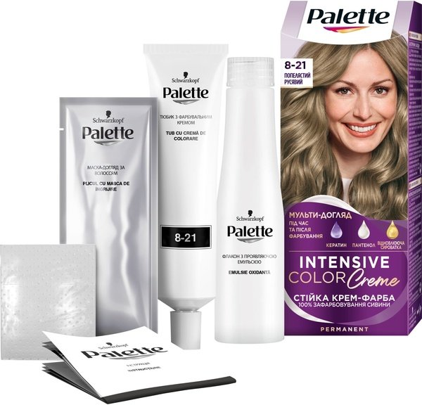- Стійка крем-фарба для волосся Palette 8-21 Попелястий русявий 115мл