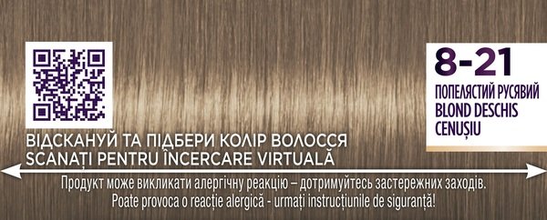 | Відтінок | 8-21 Попелястий русявий |